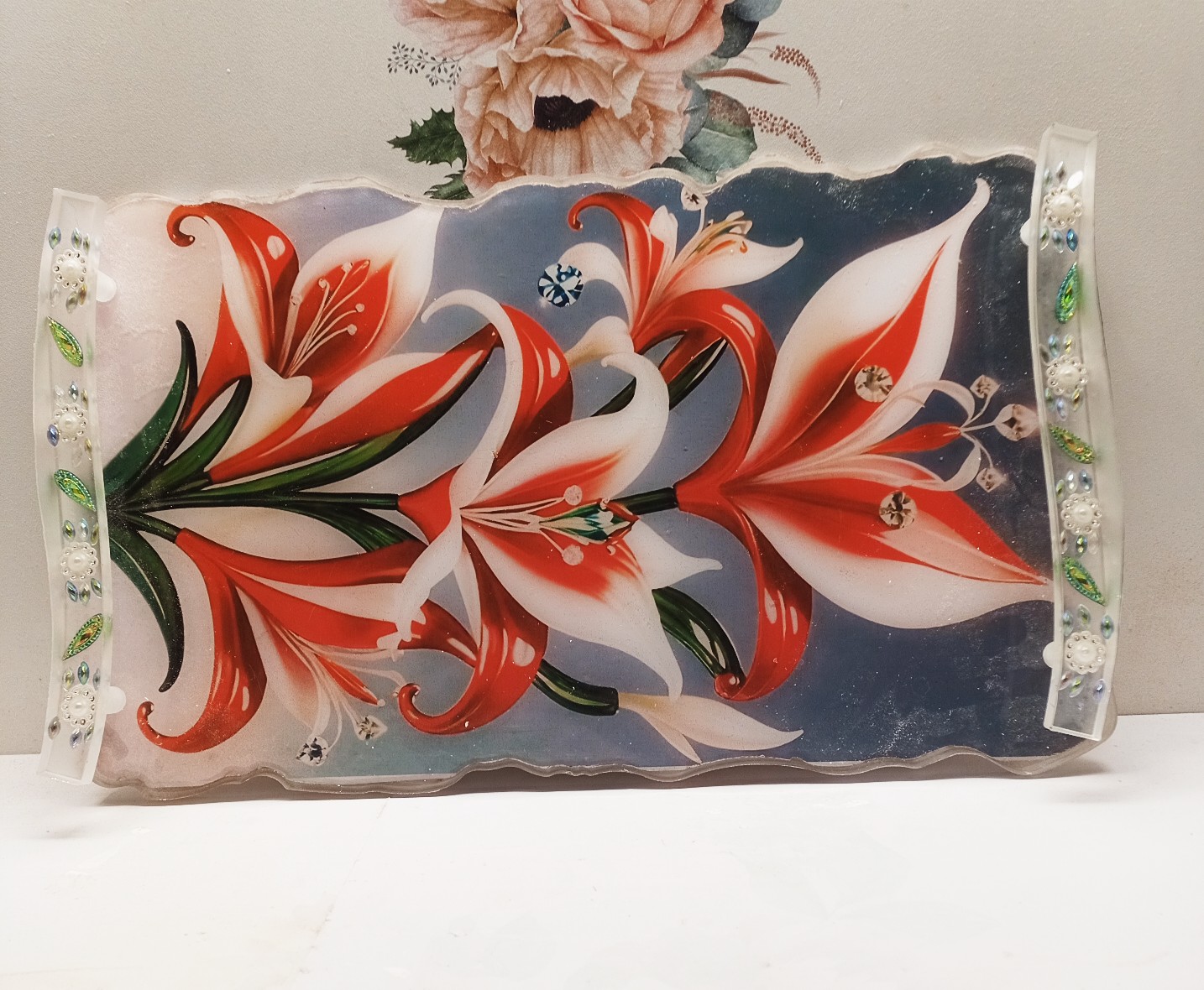- Büyük boyutuyla dikkat çeken bu sunum tepsisi, 35x20 cm ölçülerindeki tasarımıyla özel günlerinizde şıklığı ve zarafeti bir arada sunar.; - Küçük boyutu olan 18x29 cm ölçülerindeki model ise daha samimi etkinlikleriniz için idealdir.; - Bakım talimatlarına uygun olarak nemli bir bez ile kolayca temizlenebilir; böylece her zaman yeni gibi kalır.; - Üretiminde kullanılan epoksi reçine malzemesi sayesinde dayanıklılık ve uzun ömürlü kullanım vaat eder.; - Menşei Türkiye'den gelen bu ürünler, yerel kaynakların değerlendirilmesini destekleyerek sürdürülebilir moda anlayışını pekiştirir