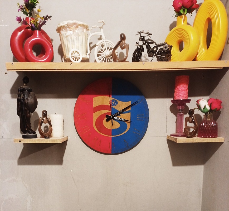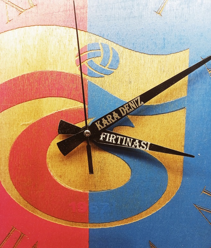 • Lazer işleme ahşap dekoratif 38x38cm trabzon spor temalı duvar saati.