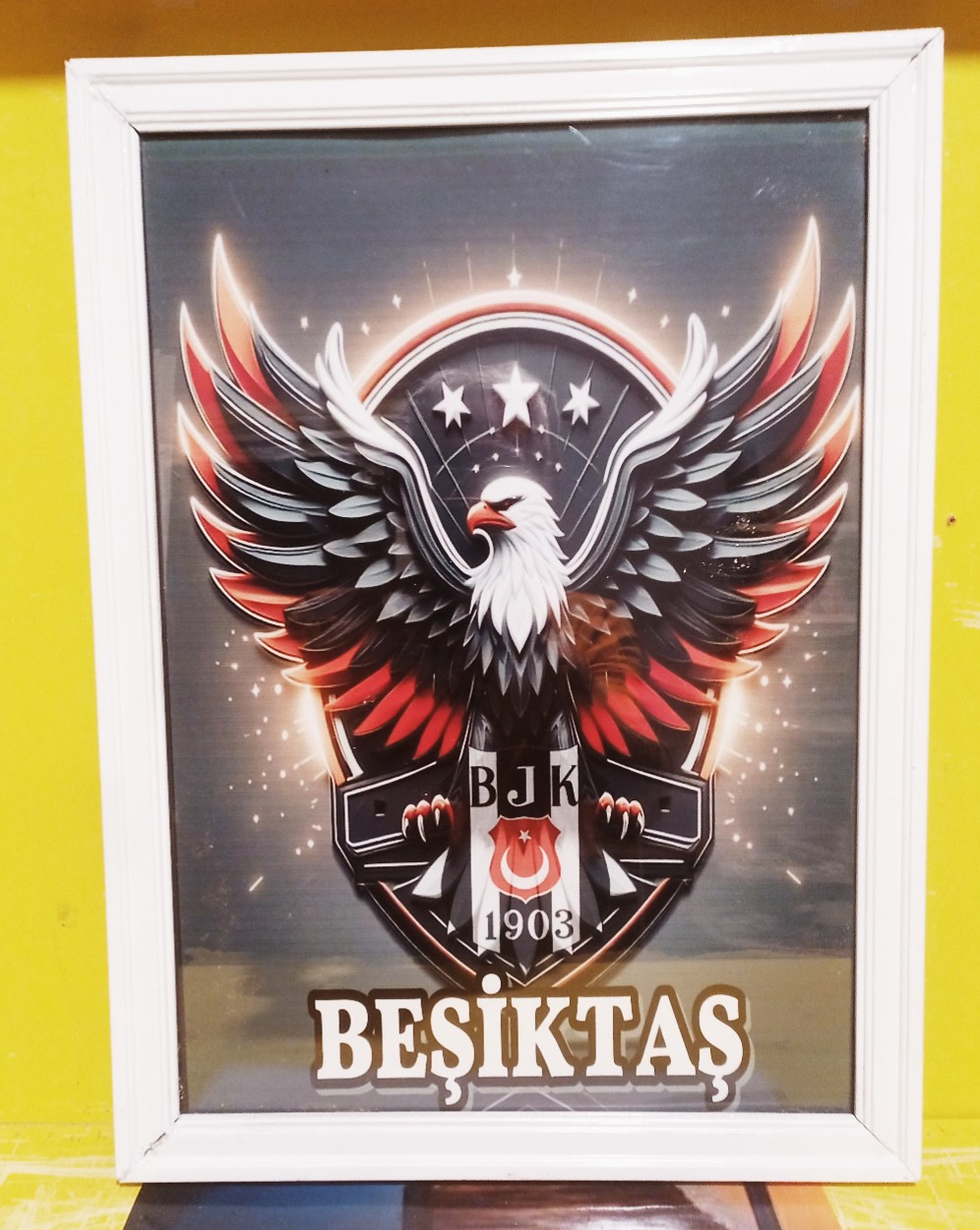 - tüm  taraftarlarının beğenisine sunulan bu dekoratif tablolar, 51x35 cm boyutlarındaki şık tasarımıyla dikkat çeker.; - Türkiye'de üretilen bu ürünler, yerli üretim olmasıyla gurur verici bir tercih sunar.; - Tek parça halinde gelen bu tablo, kolay montaj avantajı sağlar ve ekstra parçalarla uğraşmanıza gerek kalmaz.; - Çerçeveli tasarımı sayesinde duvarınızda asıldığında estetik bir görünüm kazandırır ve spor temalı dekorasyonunuza uyum sağlar.; - spor kulüplerinin  sembolik renklerini taşıyan bu tablolar, spor temalı stilinizi yansıtmanız için idealdir.